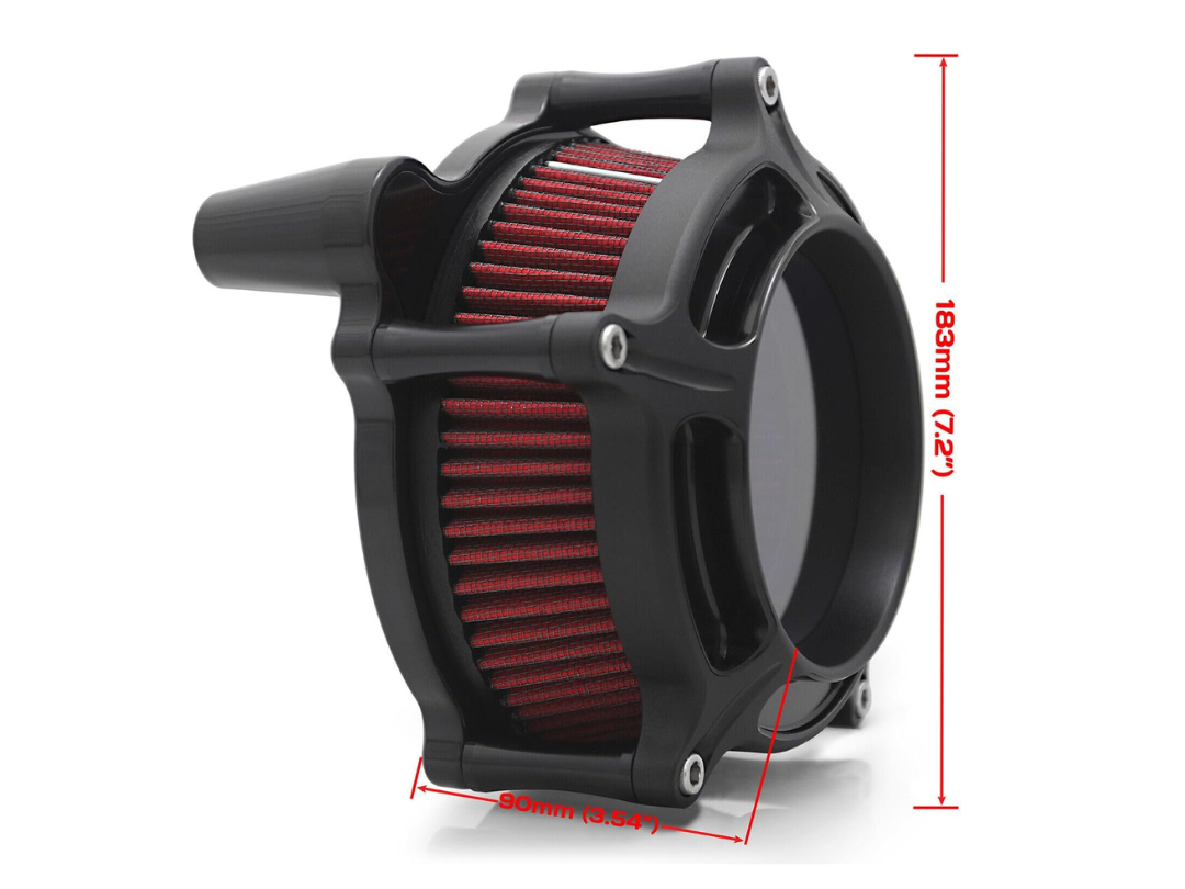 Upgrade your Harley-Davidson’s intake system with this CNC-machined billet aluminum air cleaner, engineered to maximize airflow while maintaining a clean, aggressive appearance. The exposed red high-volume filter enhances air intake efficiency, improving throttle response and overall engine performance.